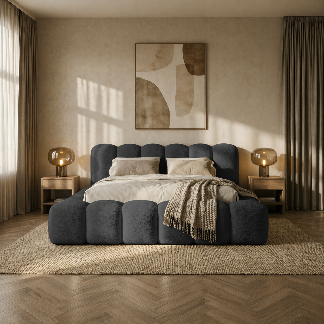 Łóżko tapicerowane szare DALLAS 200x200 to propozycja dla osób, które poszukują połączenia nowoczesnej estetyki z codzienną wygodą użytkowania. Prosta, uporządkowana bryła, stonowana forma oraz funkcjonalna konstrukcja sprawiają, że model ten doskonale odnajduje się zarówno w nowoczesnych, jak i bardziej klasycznych aranżacjach sypialni.