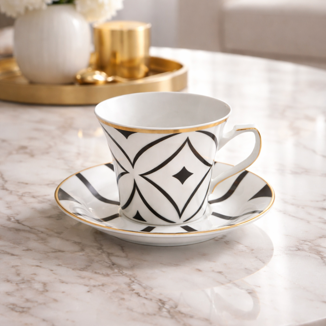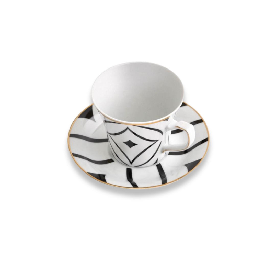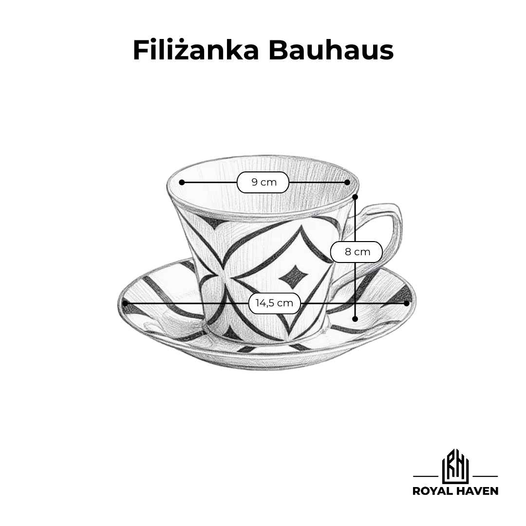 Filiżanka ze spodkiem Bauhaus to manifest wyrafinowanego smaku. Inspirowana legendarną estetyką modernizmu, łączy geometryczną precyzję czerni z subtelnym blaskiem złota, tworząc kompozycję, która przyciąga wzrok i nadaje wnętrzu wyrazisty, artystyczny ton. To nie jest zwykła zastawa – to detal, który buduje atmosferę.