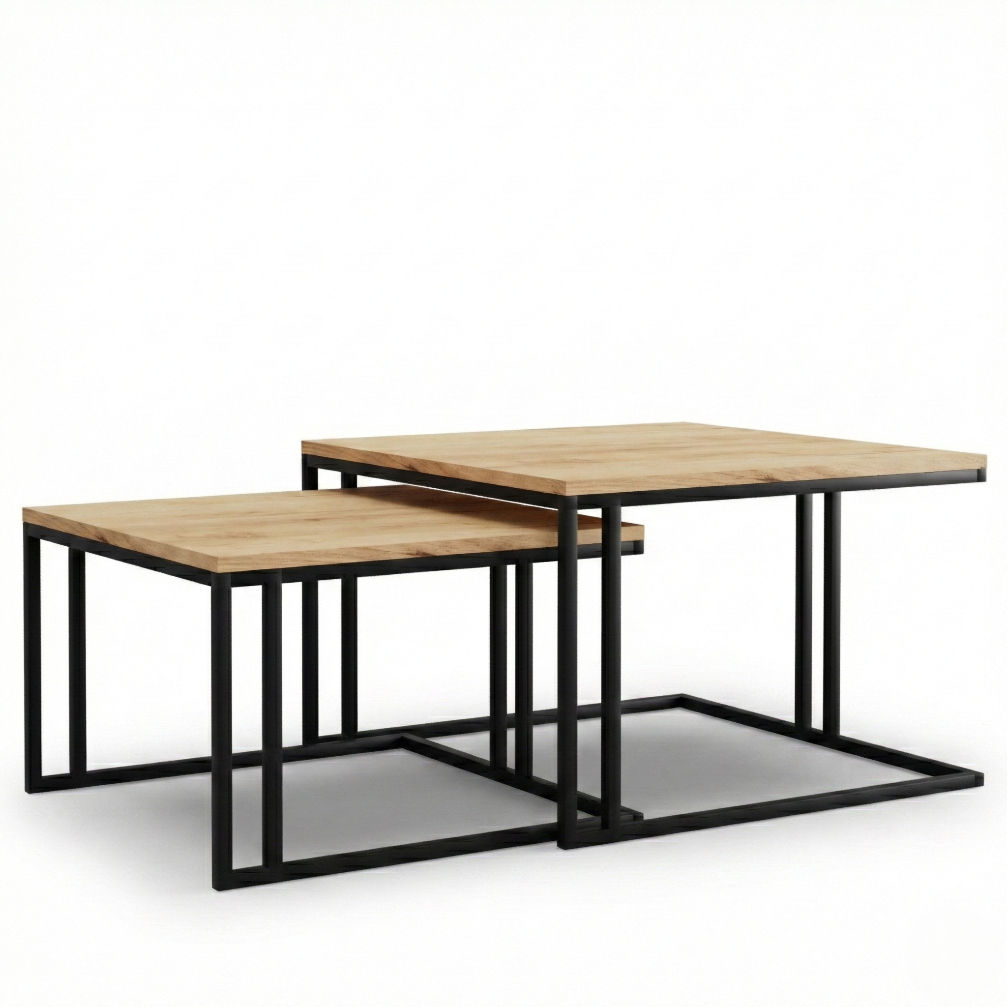 SOHO - komplet stolików kawowych - industrialny duet w kolorze złotego dębu