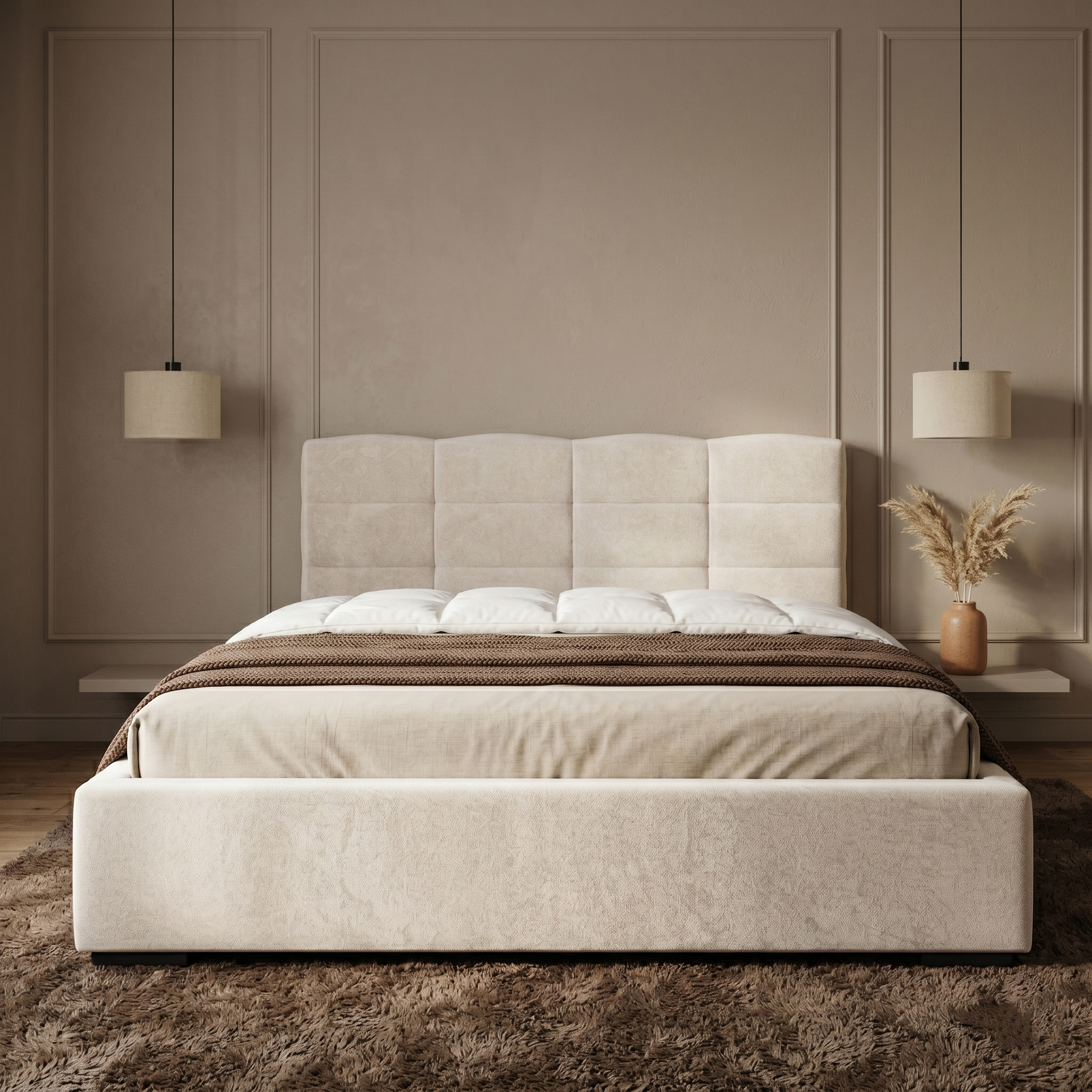 Charakterystycznym elementem modelu FARO jest efektowny zagłówek z geometrycznymi podziałami, które nadają całości nowoczesny, uporządkowany charakter. Miękkie, wyraźnie zaznaczone panele budują elegancki rytm i sprawiają, że łóżko staje się centralnym punktem sypialni. To połączenie subtelności i wyrazistego designu, które doskonale odnajduje się zarówno w nowoczesnych, jak i bardziej klasycznych aranżacjach.