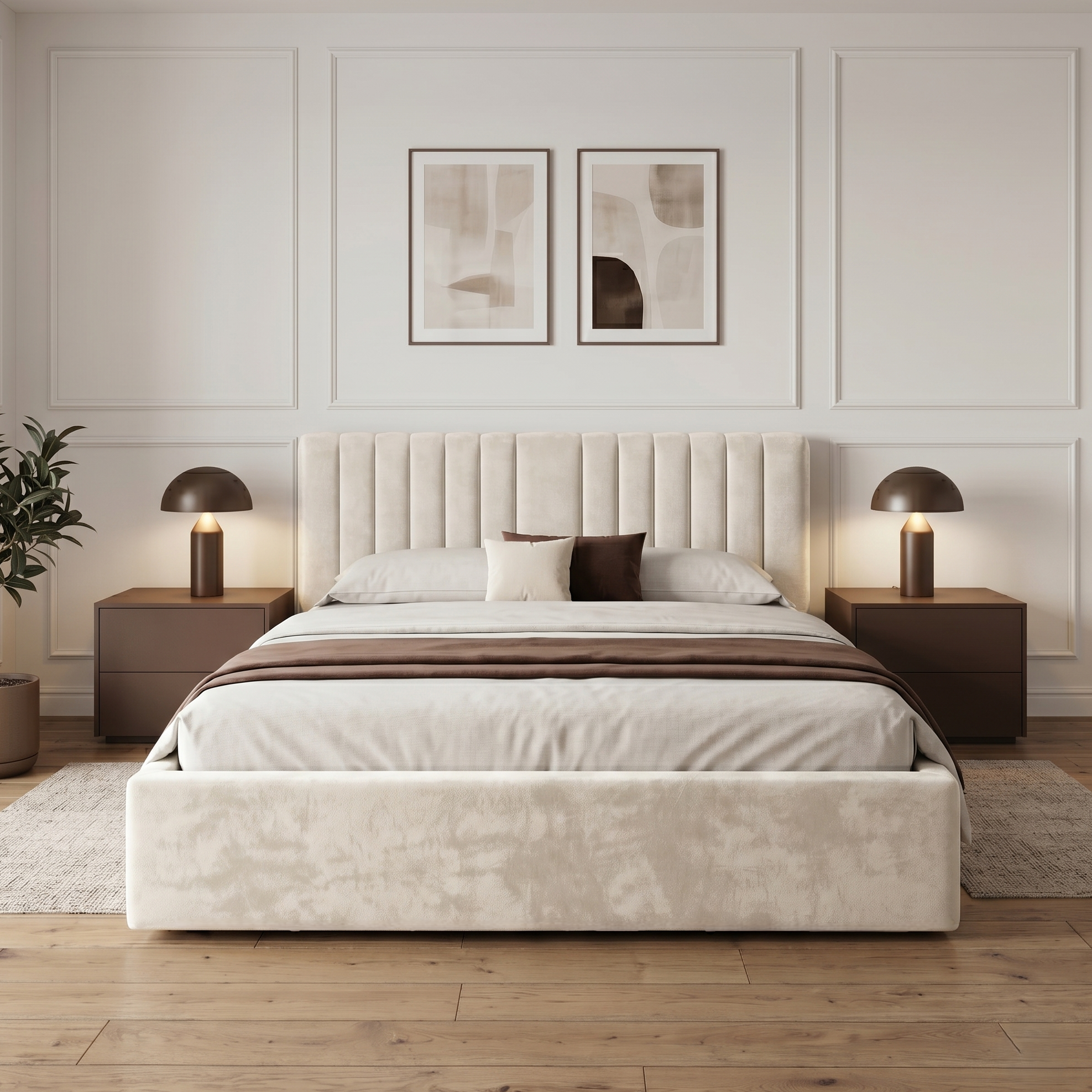 Model został zaprojektowany tak, aby łączyć estetykę z codzienną wygodą użytkowania. Miękki zagłówek zapewnia komfortowe oparcie podczas odpoczynku, a starannie wykończona forma łóżka podkreśla jego elegancki charakter. Prosta, harmonijna linia sprawia, że VEGAS Center wprowadza do wnętrza przytulność i uporządkowaną, nowoczesną formę.