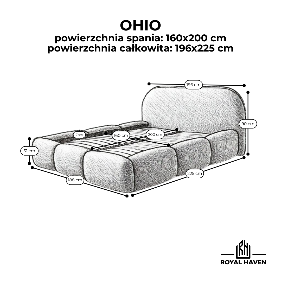 Łóżko tapicerowane OHIO to wybór dla osób ceniących wygodę, estetykę i funkcjonalność w mniejszych przestrzeniach. Eleganckie, subtelne i ponadczasowe - stworzone, by sypialnia była przytulna, spokojna i stylowa.