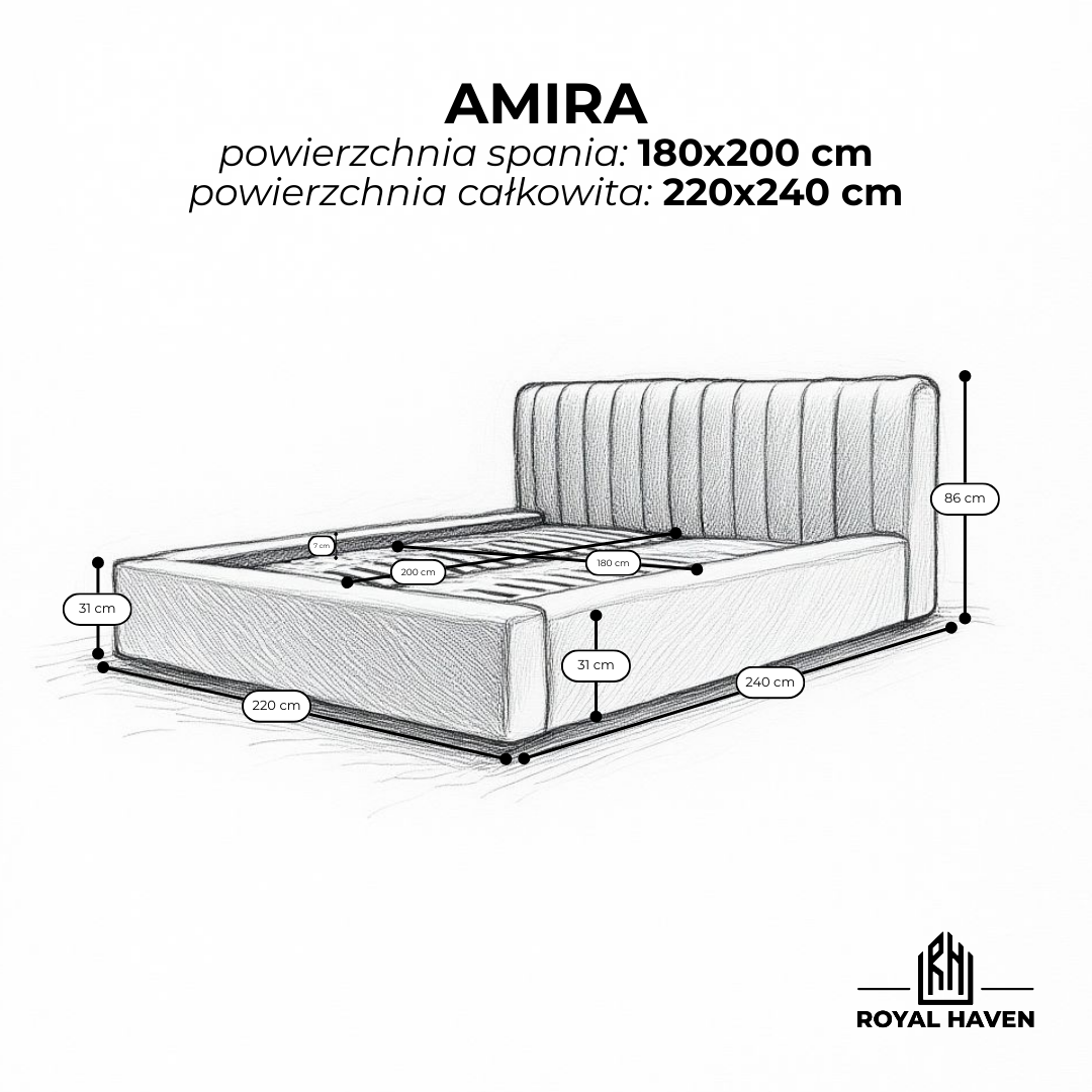 Łóżko tapicerowane AMIRA 180x200 to świadomy wybór dla osób, które poszukują nowoczesnej formy, komfortu i praktycznych rozwiązań w kompaktowym wydaniu. Dopracowane w detalu, stworzone z myślą o codziennym komforcie i harmonii wnętrza.