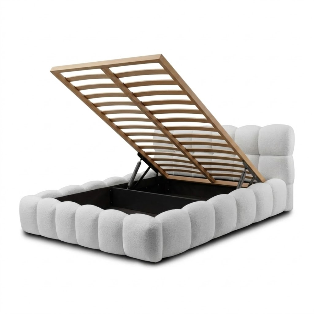 To tzw. łóżko typu „chmurka” - zachwyca miękką, otulającą bryłą, zaokrąglonymi kształtami i wyjątkową przytulnością. Jego forma sprawia, że wnętrze od razu staje się cieplejsze, bardziej komfortowe i nowoczesne.
