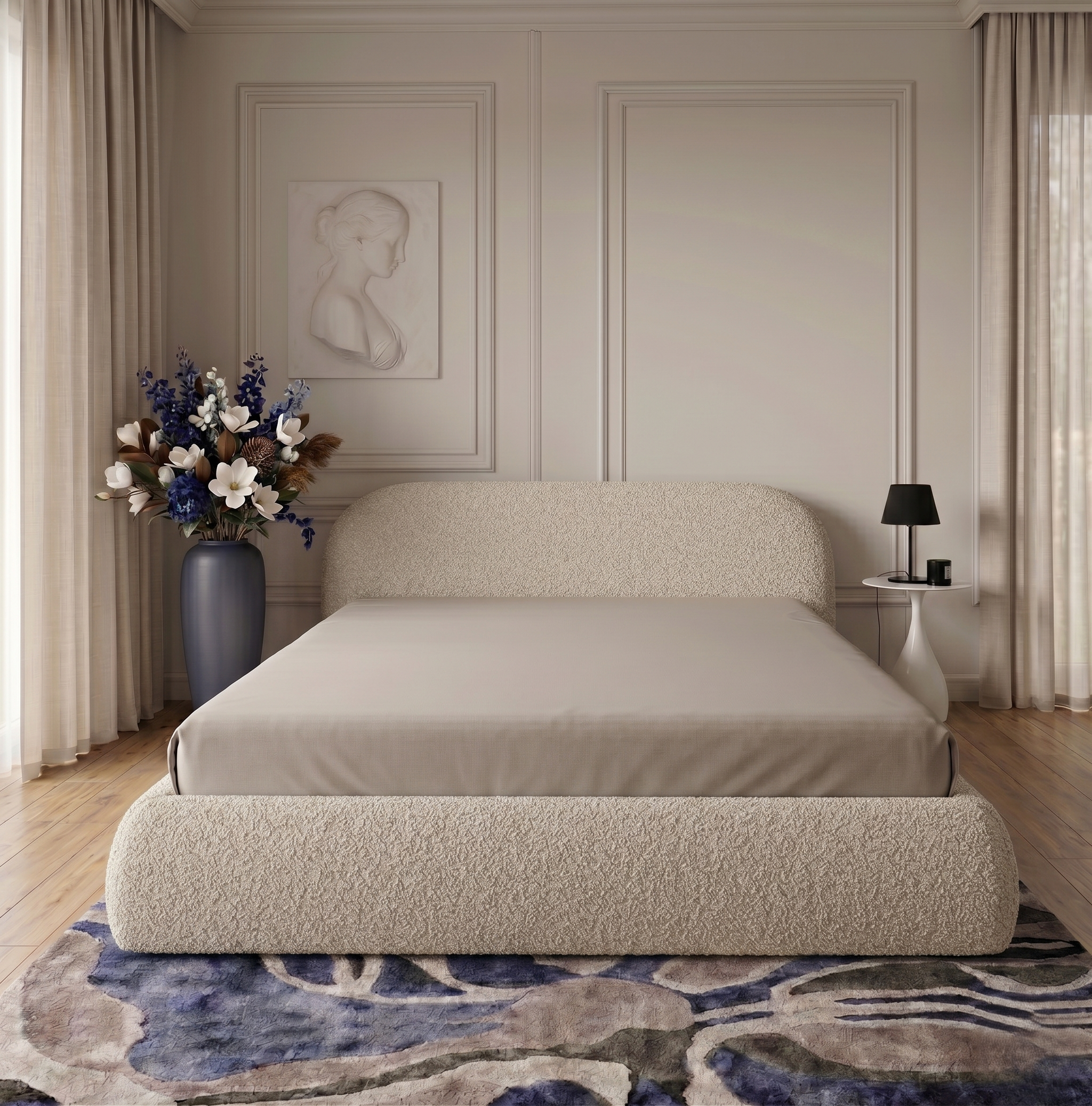 Na wizualizacji łóżko Atlanta Slim zaprezentowano w tkaninie Quelle 03, w eleganckim beżowym odcieniu.