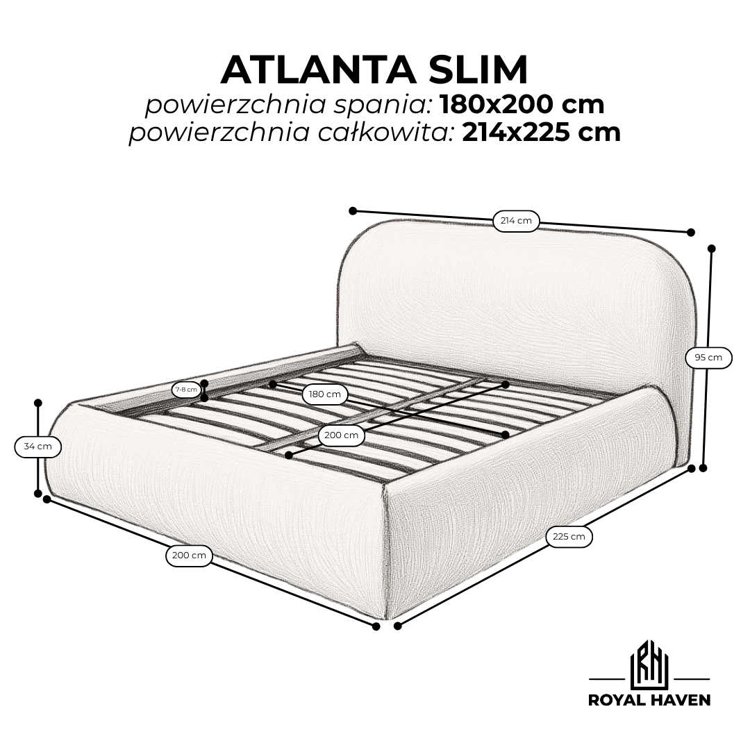 Łóżko tapicerowane ATLANTA SLIM to dopracowana w każdym detalu odpowiedź na potrzeby nowoczesnych wnętrz: lekkie wizualnie, a jednocześnie niezwykle komfortowe łóżko, które pozwala maksymalnie wykorzystać przestrzeń. Jego smukła forma sprawia, że sypialnia zyskuje oddech i harmonię, a miękkie, zaokrąglone linie oraz przytulne wykończenie tworzą efekt subtelnego luksusu.