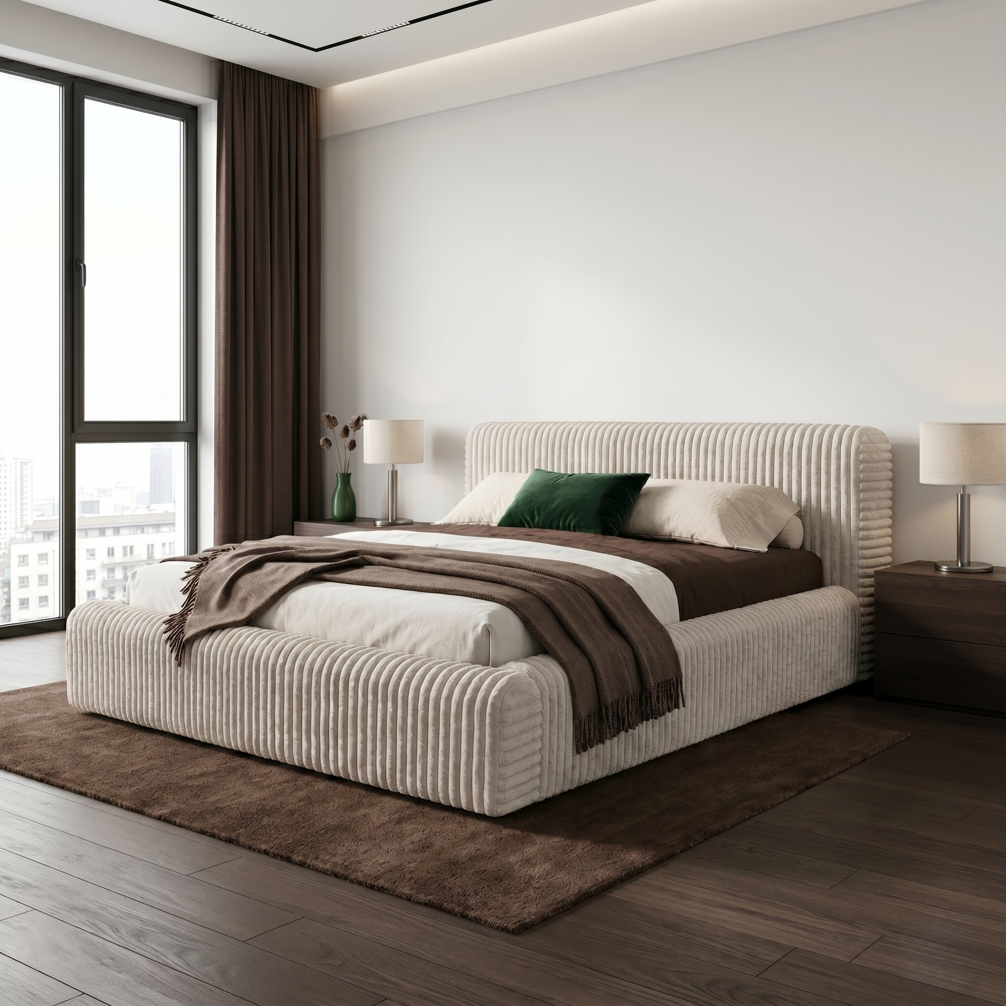 - Głęboki pojemnik na pościel – funkcjonalne rozwiązanie pozwalające efektywnie zagospodarować przestrzeń sypialni