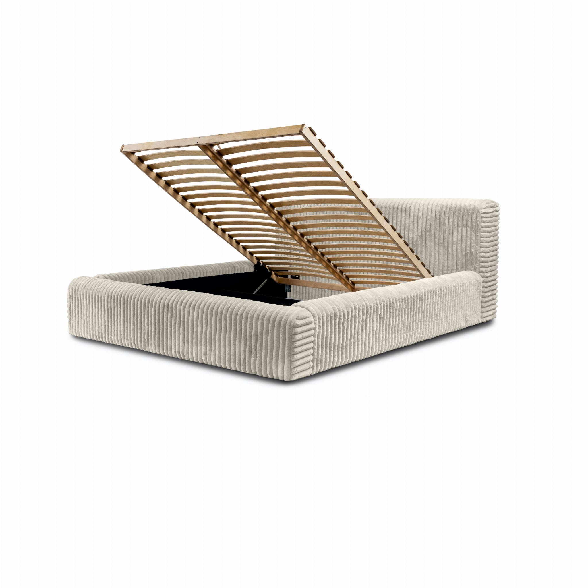 Łóżko tapicerowane 160x200 HANA z pojemnikiem i stelażem beżowe - personalizacja koloru oraz rodzaju tkaniny