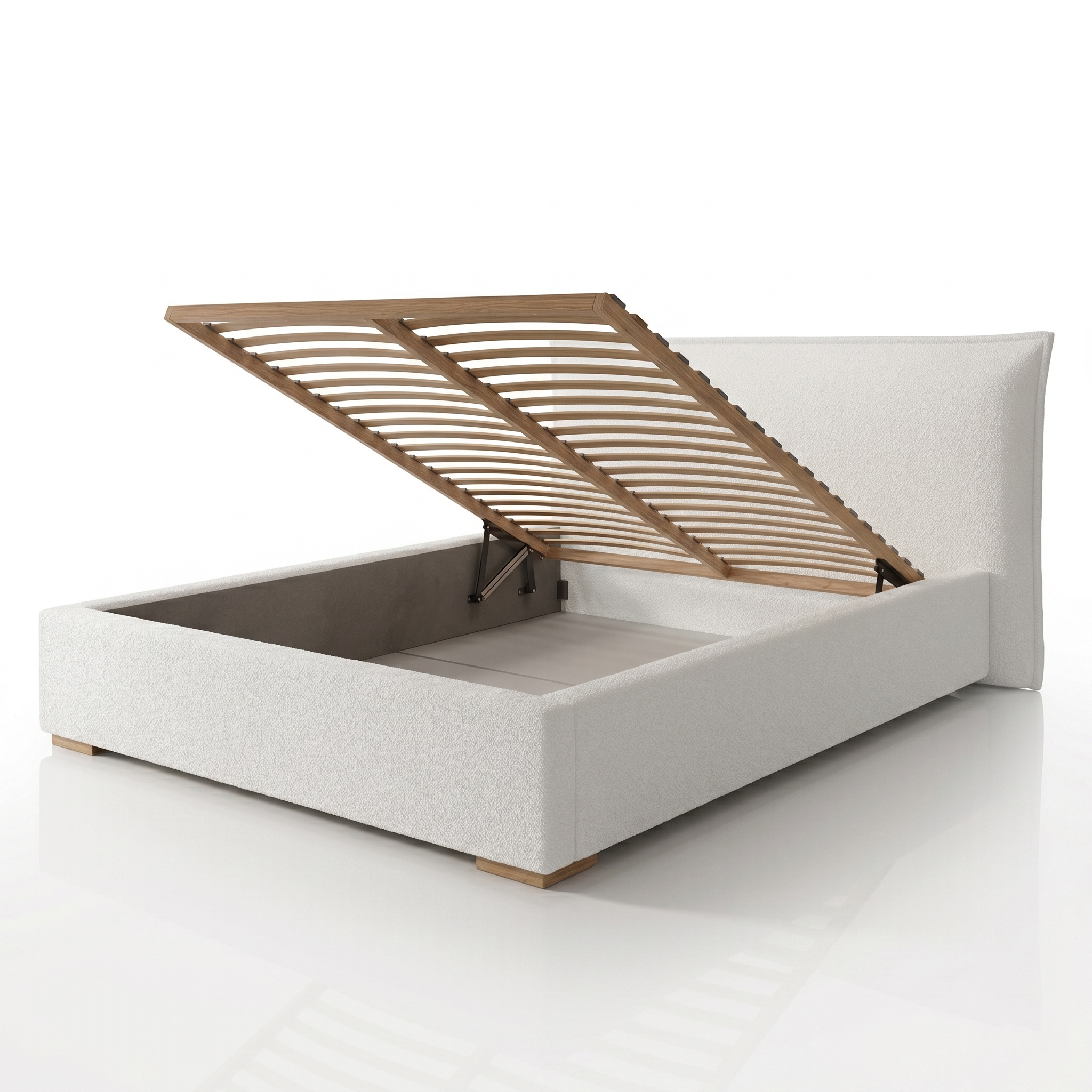 - Przestronny pojemnik na pościel – praktyczne miejsce do przechowywania, z dnem z białej płyty HDF (min. 3,2 mm), udźwig do 20 kg
