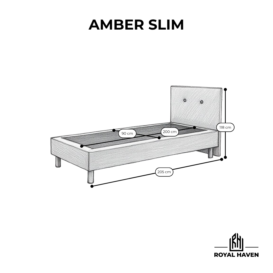AMBER SLIM to stabilność i trwałość na lata, dzięki zastosowaniu wzmocnionej ramy z wysokiej jakości płyty meblowej. Solidna konstrukcja zapewnia odporność na codzienne użytkowanie, a wbudowany stelaż eliminuje problem luzowania się elementów czy skrzypienia, gwarantując komfortowy i regenerujący sen.