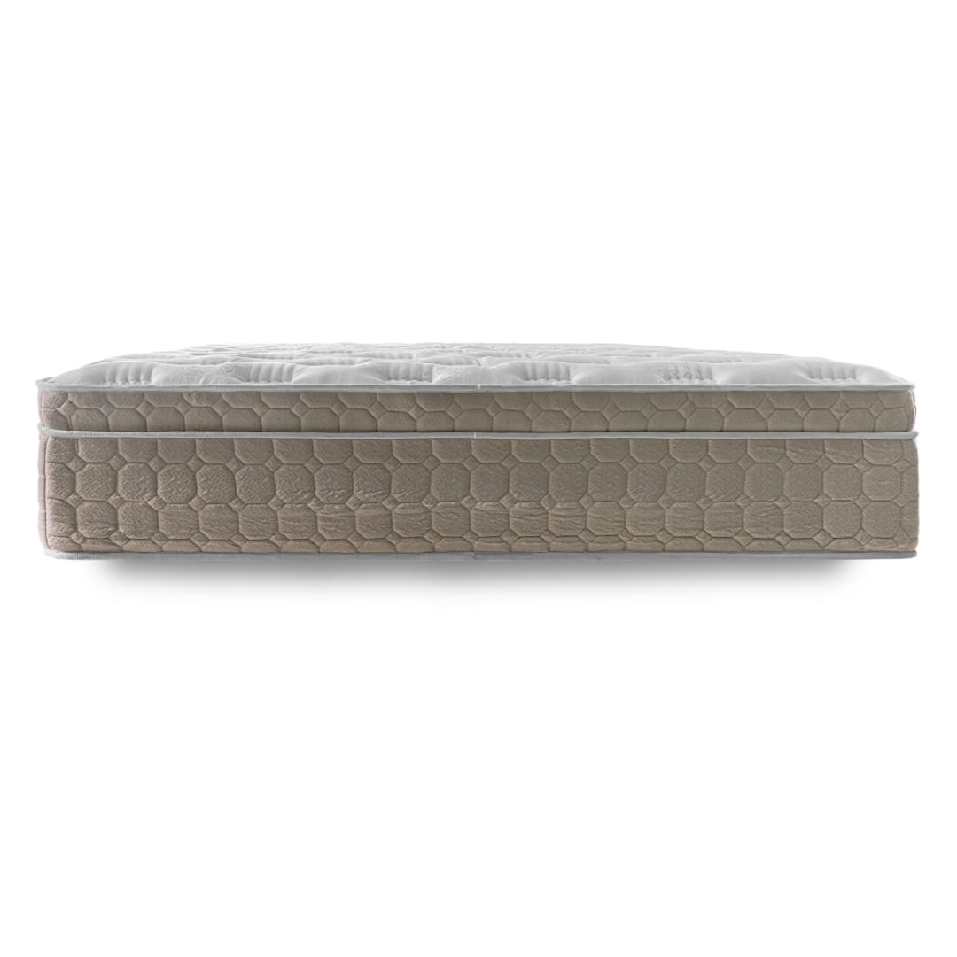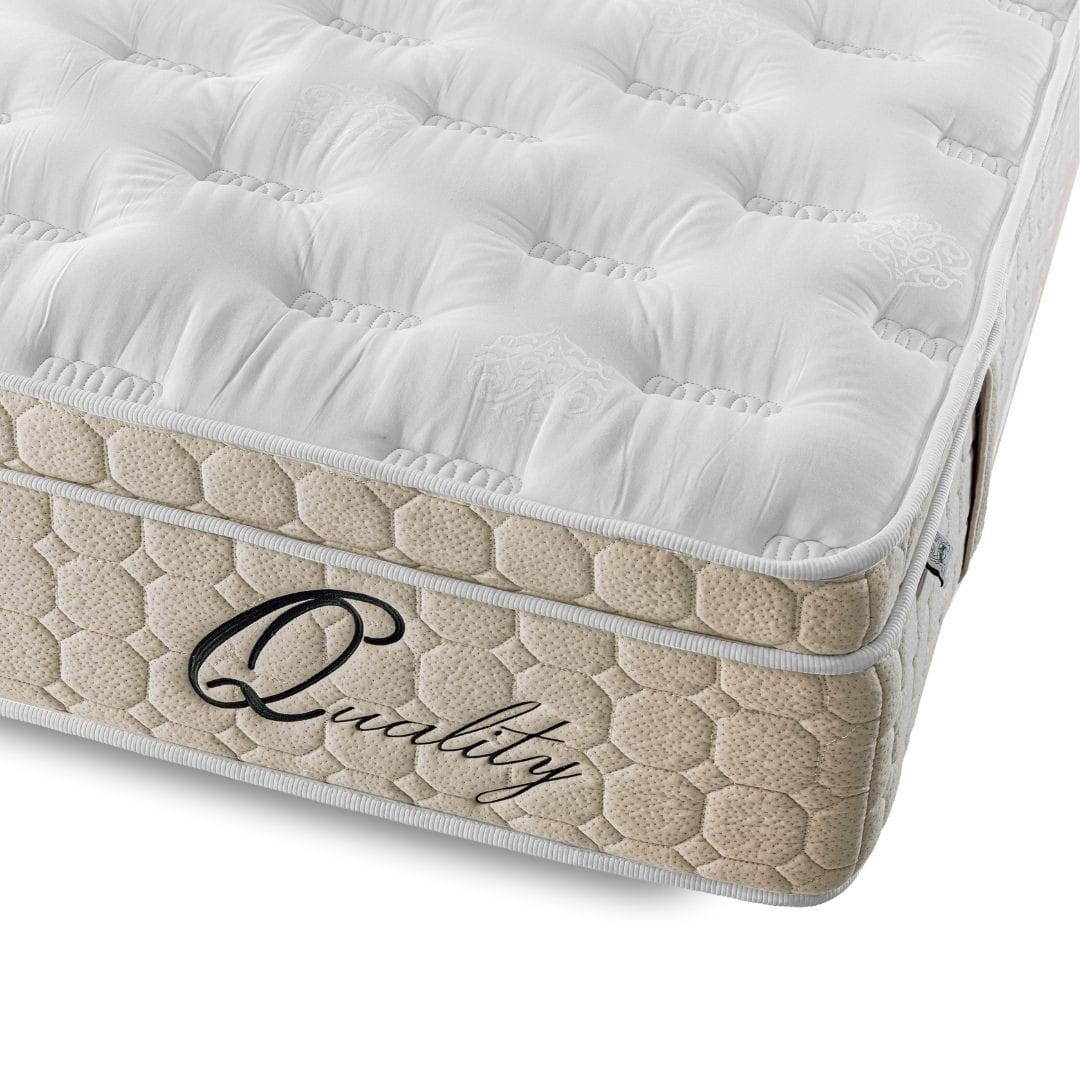 Dzianina bawełniana (bawełna + poliester) Tkanina pokrowca części dolnej wykonana jest z mieszanki bawełny i poliestru, o wzmocnionym, odpornym na rozciąganie i ściskanie splocie — bez dodatkowych komponentów. Stanowi trwałą i stabilną obudowę materaca, utrzymując jego kształt i chroniąc konstrukcję przed uszkodzeniami zewnętrznymi. Wzmacnia obrzeża i zapobiega deformacjom podczas codziennego użytkowania, siedzenia lub przesuwania materaca. Nadaje całości estetyczne, wykończone i eleganckie wykończenie, charakterystyczne dla produktów klasy premium.