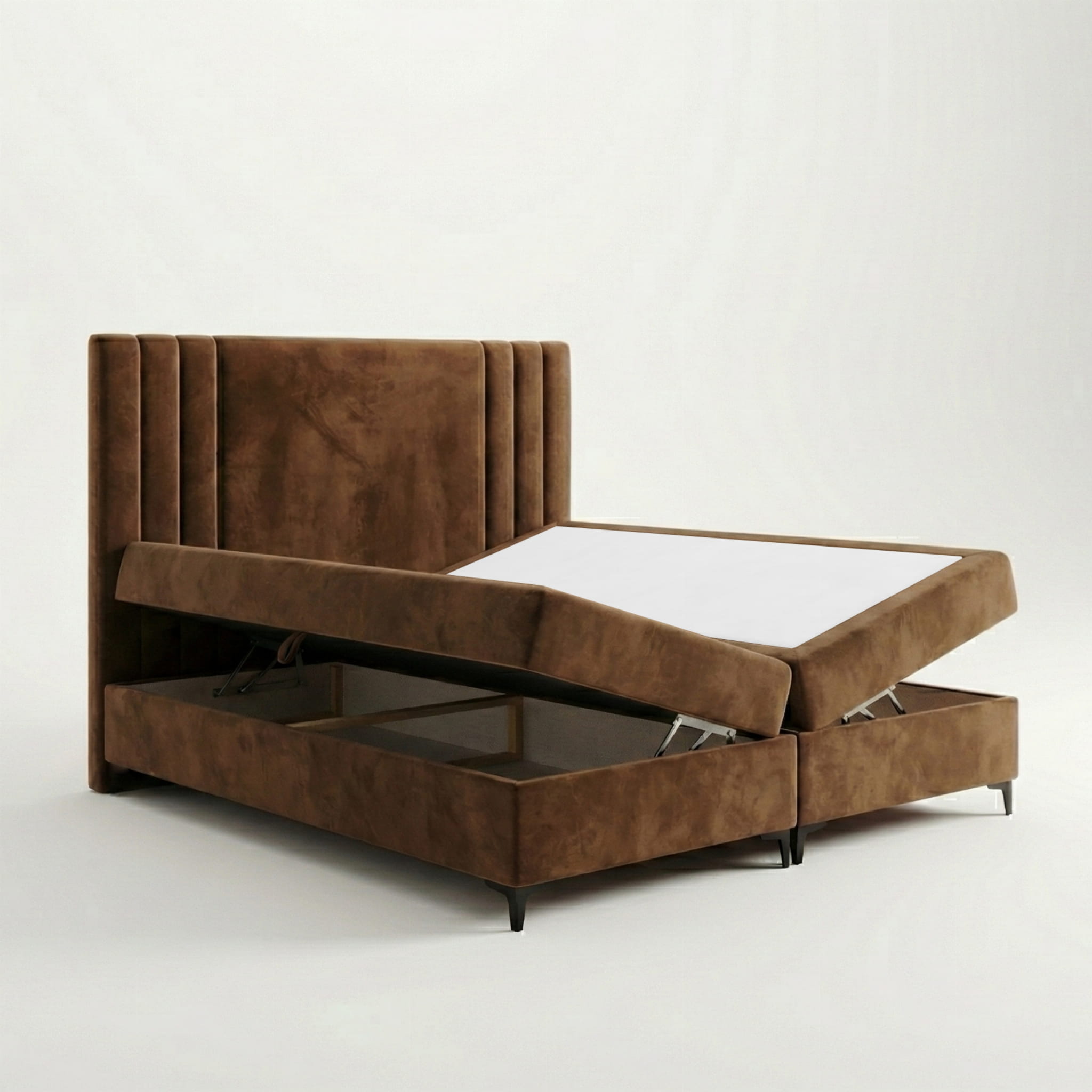 Łóżko kontynentalne HILTON 160x200 brązowe ze stelażem drewnianym i pojemnikiem na pościel