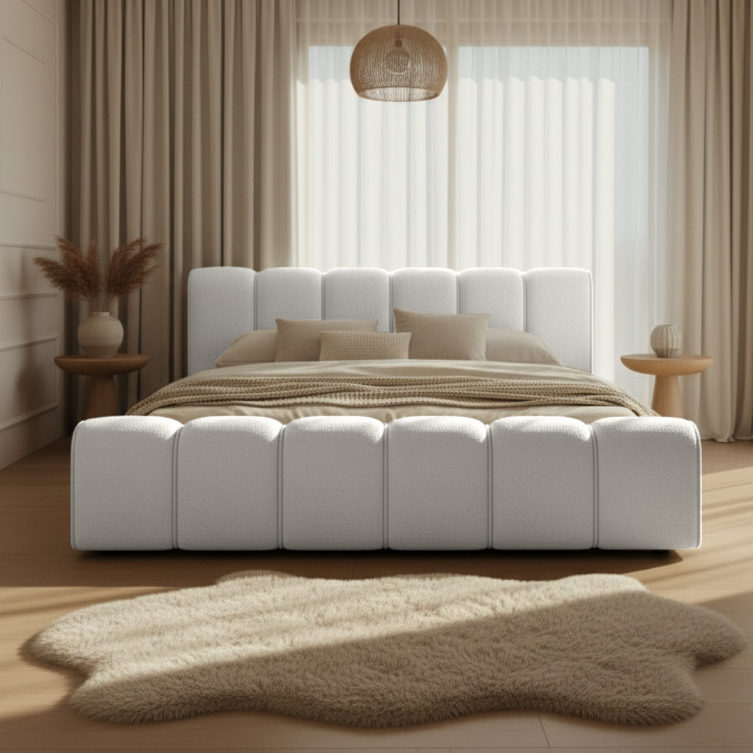 Łóżko tapicerowane białe 140x200 ADELL to idealne łóżko do sypialni, stworzone z myślą o osobach, które chcą, aby ich przestrzeń wypoczynku emanowała harmonią, światłem i subtelną elegancją. To nowoczesne łóżko z zagłówkiem, którego miękko zaokrąglona forma nadaje wnętrzu lekkości, a jednocześnie tworzy wyrazistą, designerską kompozycję.