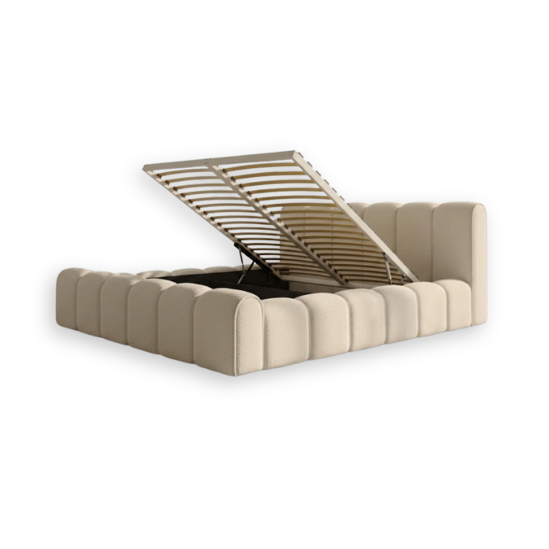 Łóżko tapicerowane ADELL 160x200 beżowe ze stelażem drewnianym i pojemnikiem na pościel