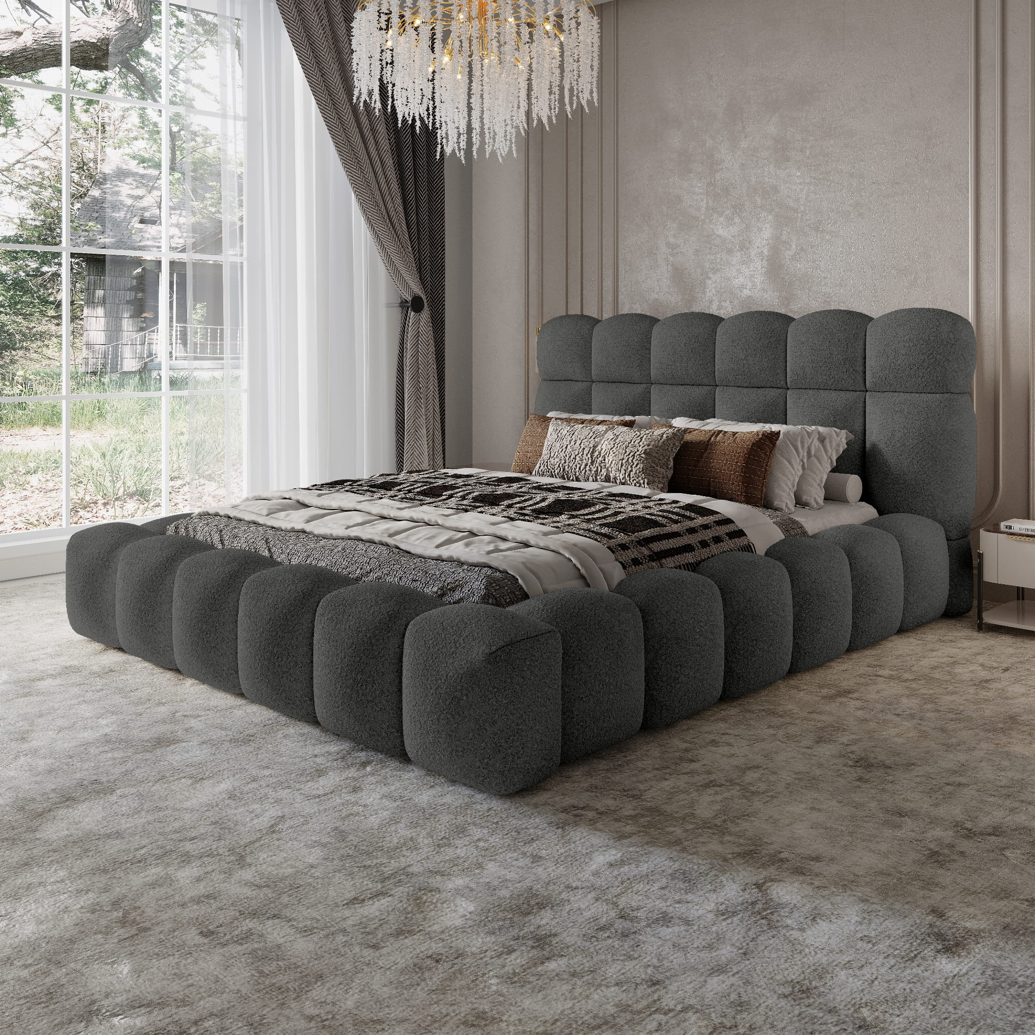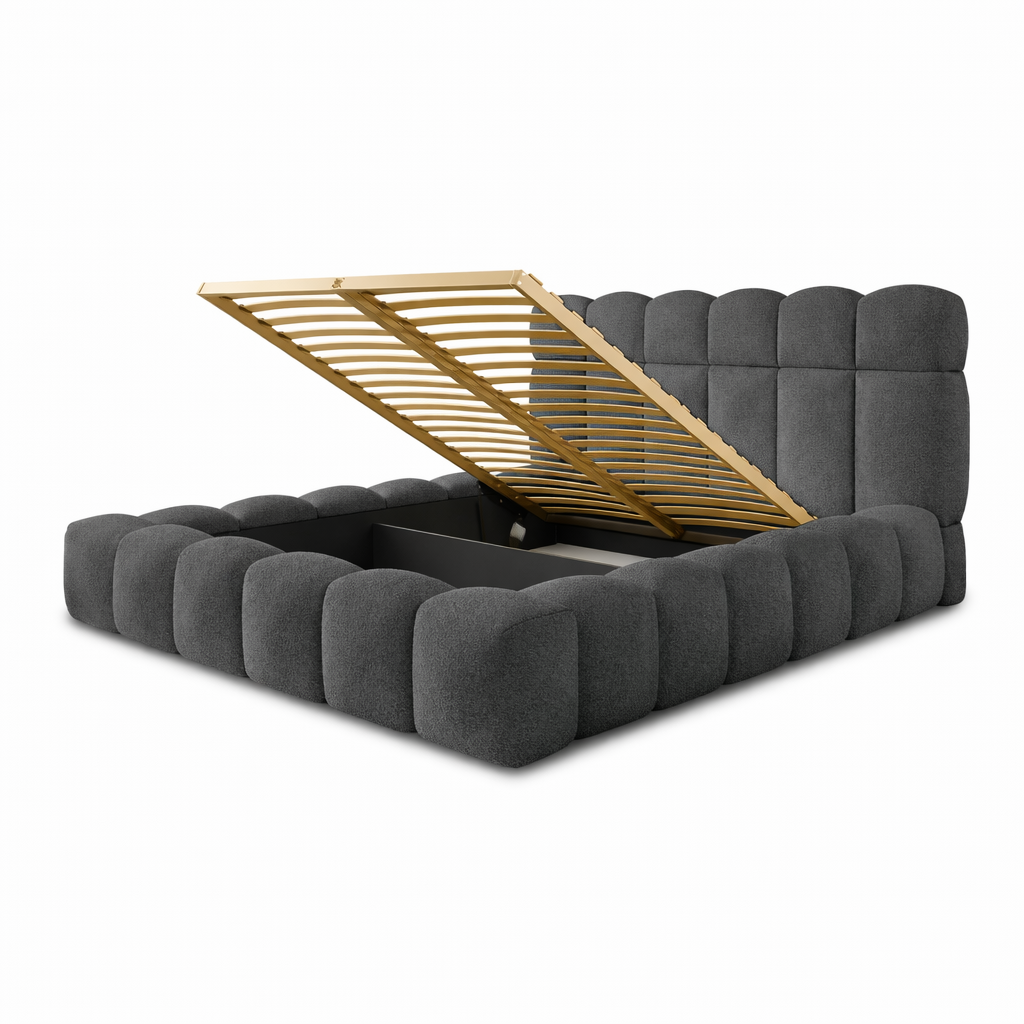 - Głęboki pojemnik na pościel – funkcjonalne rozwiązanie pozwalające optymalnie wykorzystać przestrzeń sypialni