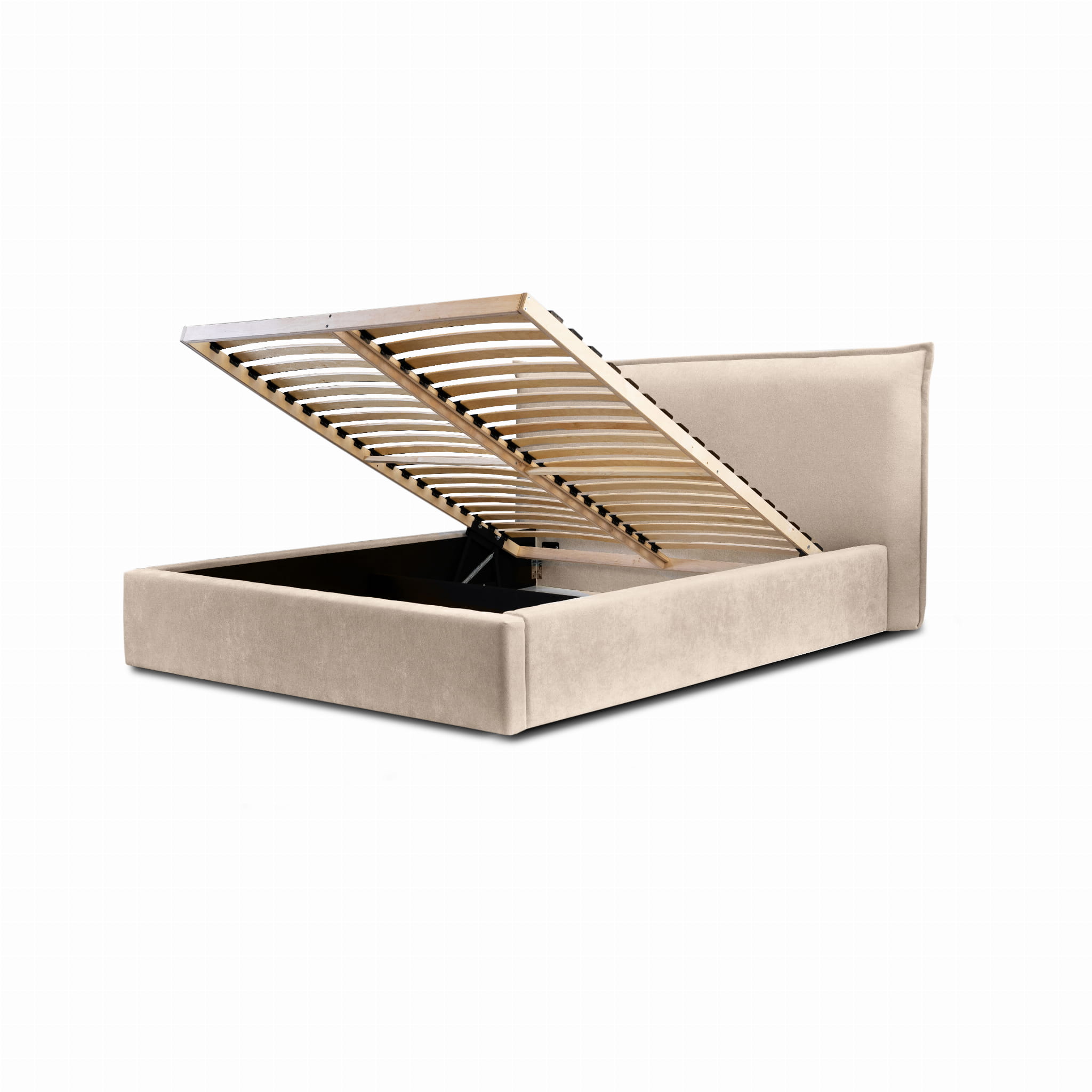 Łóżko tapicerowane NEVADA 160x200 beżowe ze stelażem drewnianym i pojemnikiem na pościel