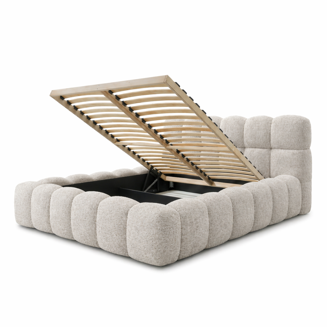 Łóżko tapicerowane BOSTON 180x200 szare ze stelażem drewnianym i pojemnikiem na pościel