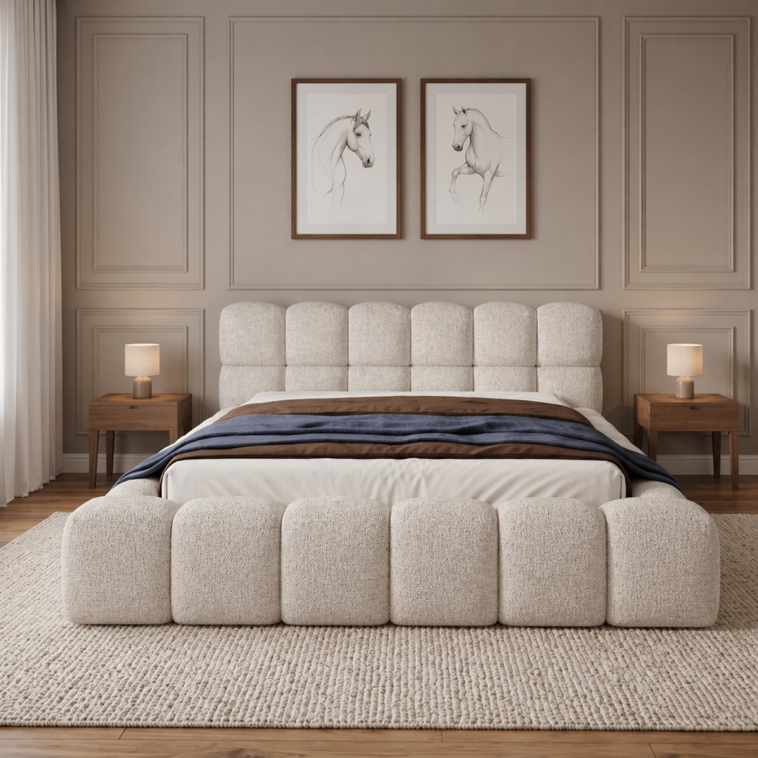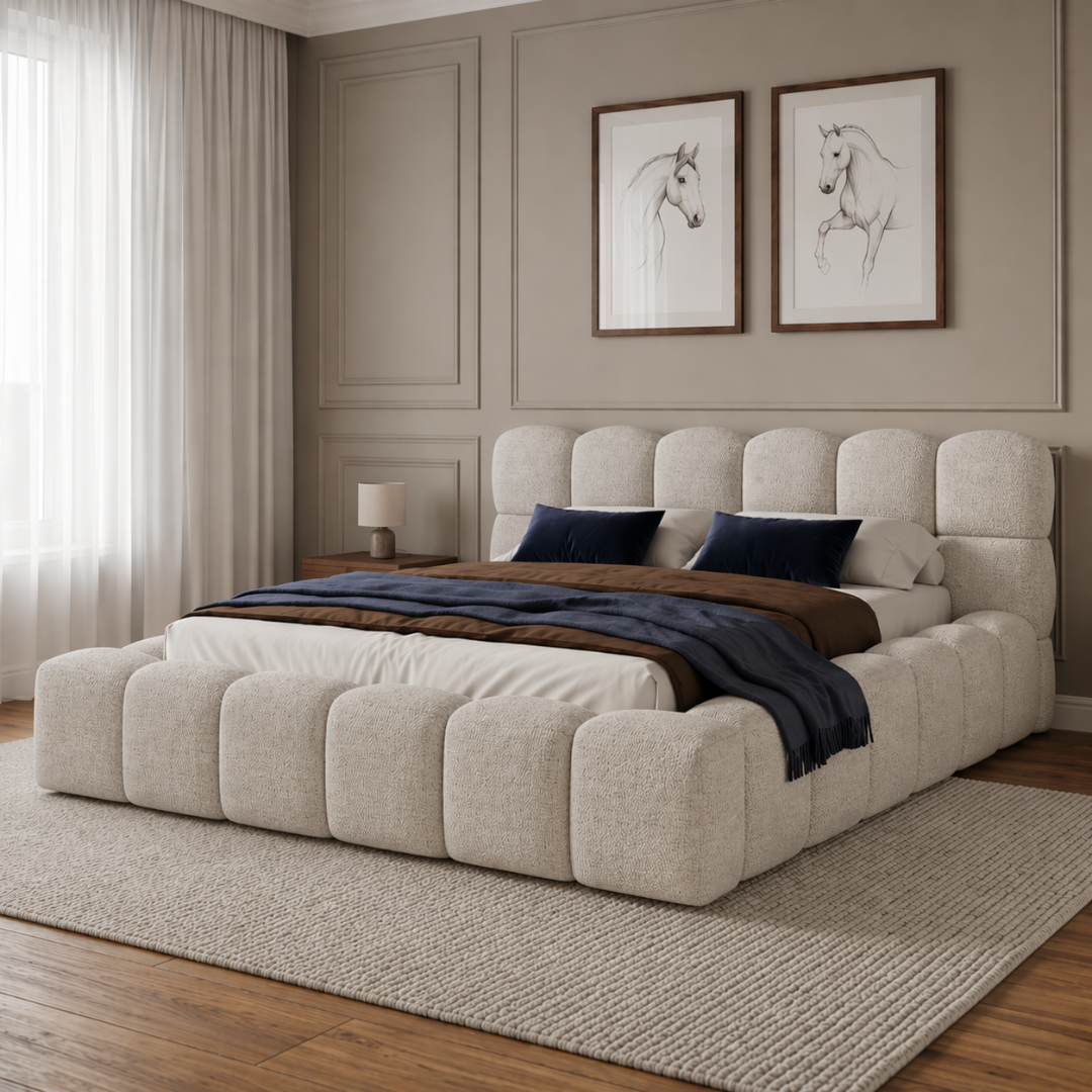 - Ponadczasowy design łóżka – pikowane, puszyste wezgłowie to doskonały wybór do wnętrz w stylu modern classic, skandynawskim czy japandi