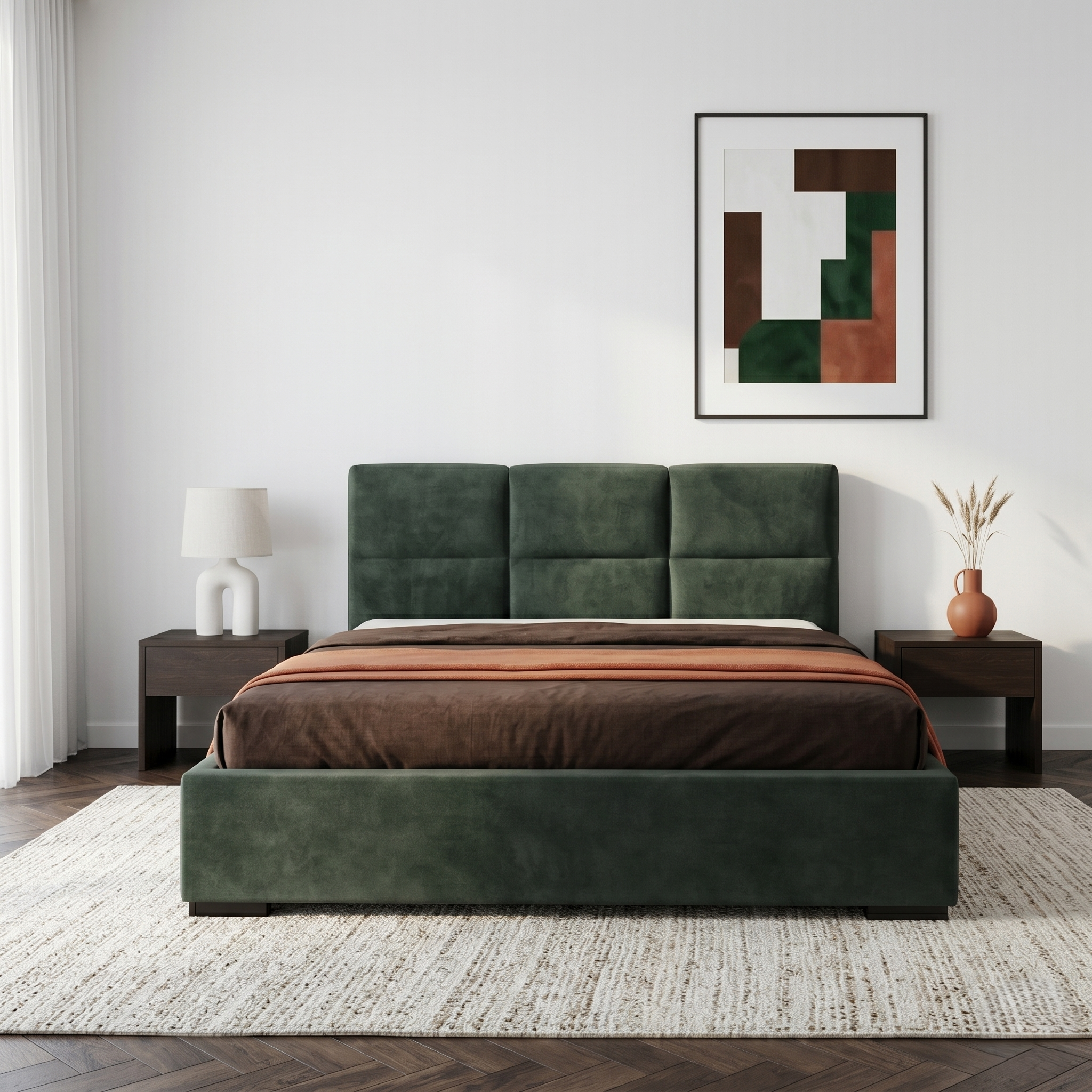 [OUTLET] Łóżko tapicerowane 180x200 PORTO zielone Macau Forest z pojemnikiem i stelażem