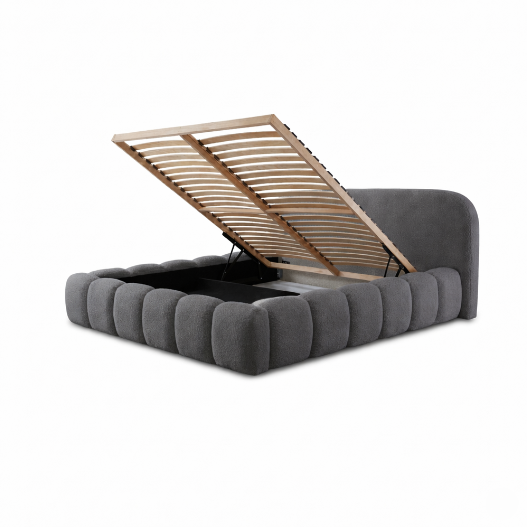 Łóżko tapicerowane ORLANDO 200x200 szare ze stelażem drewnianym i pojemnikiem na pościel