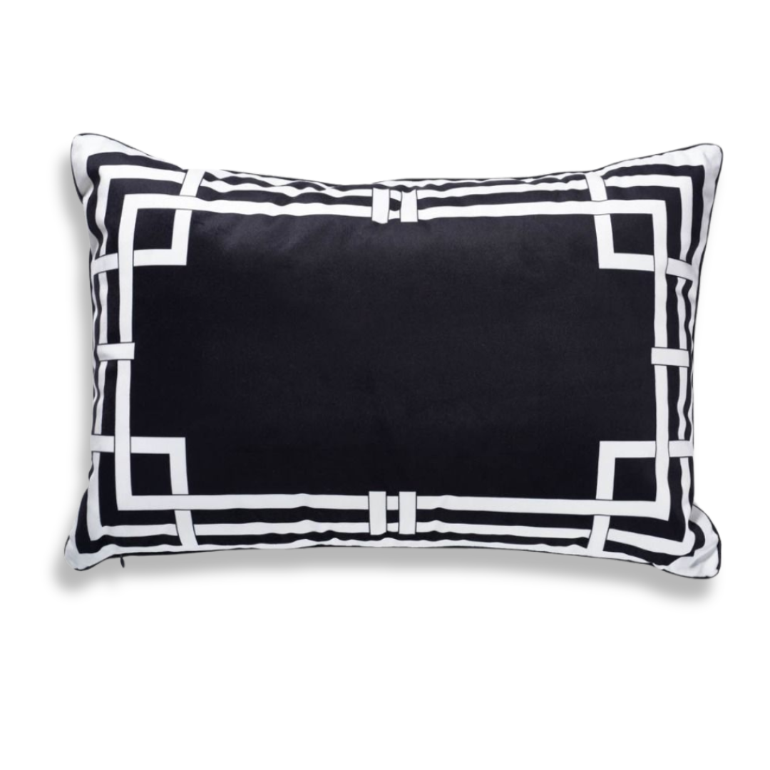 Poduszka dekoracyjna Bauhaus V to nowoczesny akcent, który przyciąga uwagę prostotą formy i wyrazistym wzorem. Kontrast czerni i bieli oraz geometryczna, inspirowana sztuką abstrakcyjną kompozycja nadają wnętrzu charakteru i porządkują przestrzeń wizualnie. To detal, który świetnie odnajduje się w nowoczesnym salonie, eleganckiej sypialni czy aranżacji inspirowanej stylem modern classic.