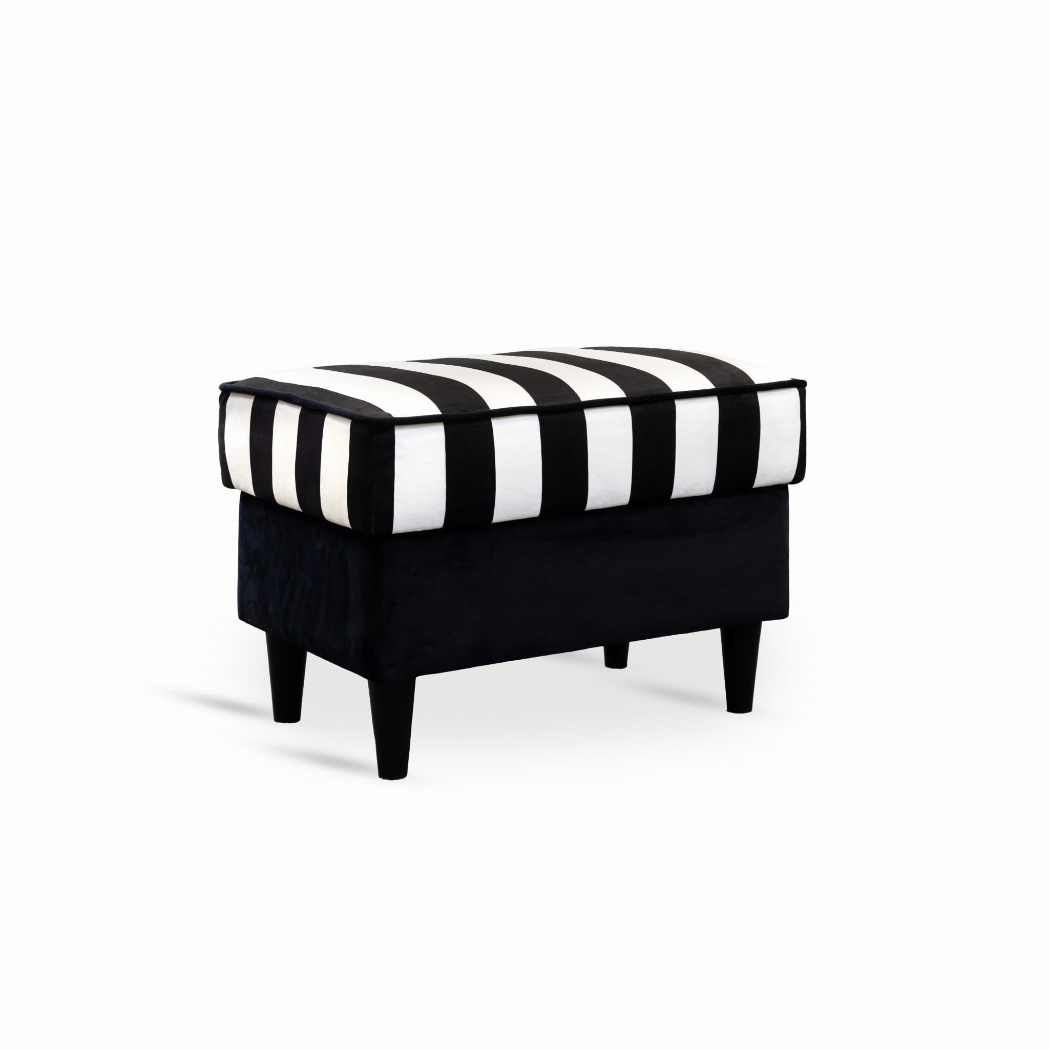 Czarno-białe pasy to klasyka w nowoczesnym wydaniu, która idealnie komponuje się z wnętrzami w stylu glamour, modern classic, skandynawskim, a nawet art deco. Wysokiej jakości materiały użyte do wykonania pufy zapewniają jej trwałość i odporność na codzienne użytkowanie. Solidna, drewniana konstrukcja oraz starannie wyprofilowane nóżki dodają całości elegancji, a miękkie siedzisko zapewnia wygodę na najwyższym poziomie.