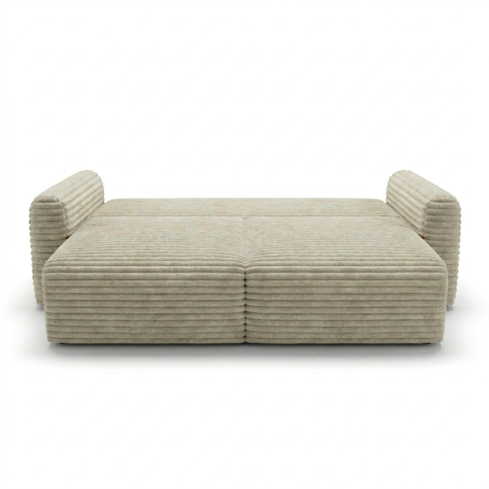 Sofa rozkładana TEDDY z funkcją spania i pojemnikiem na pościel - sztruks biało-beżowa