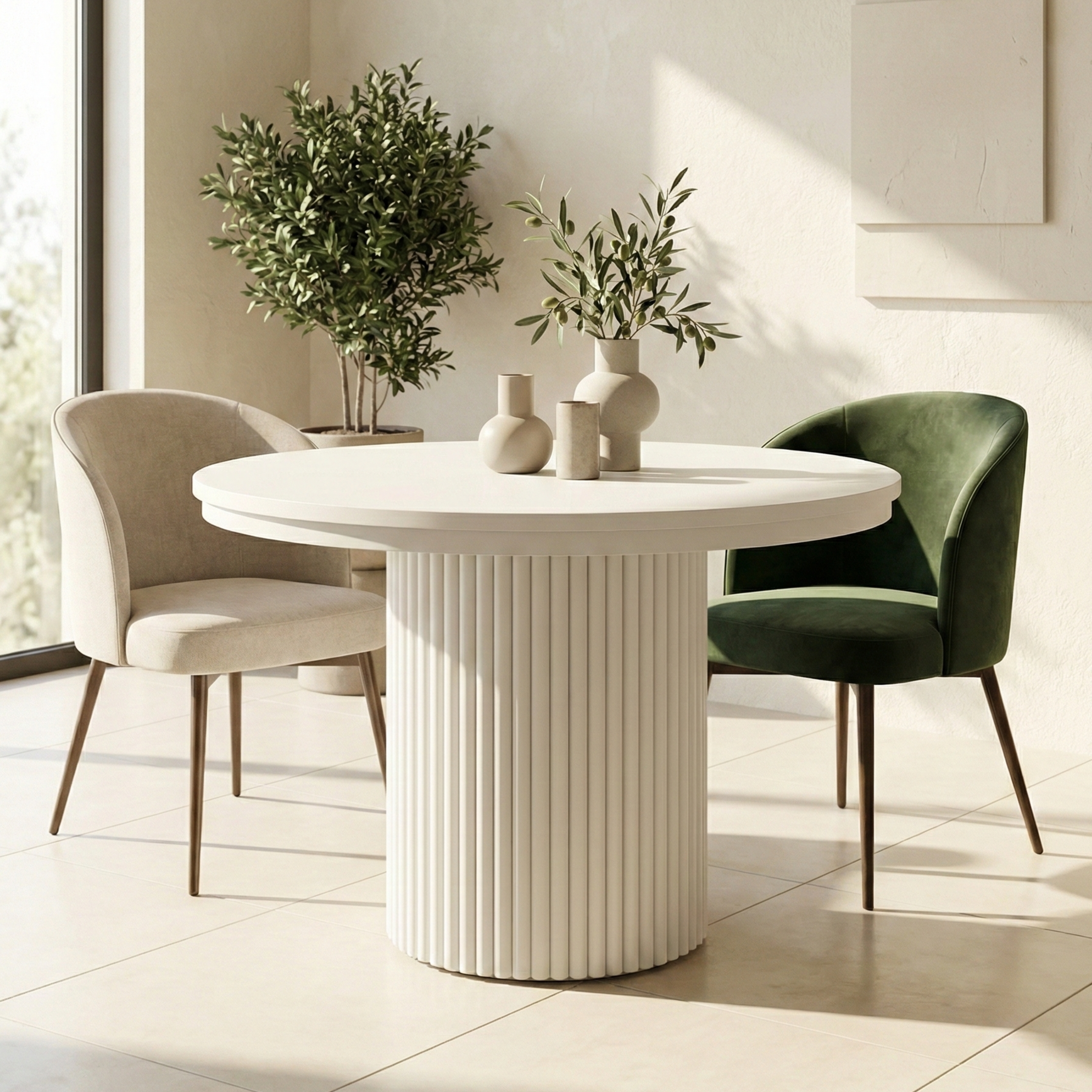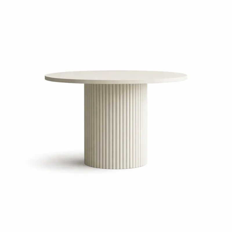 STÓŁ FENTI to połączenie ponadczasowej formy z najmodniejszym obecnie trendem ryflowanych podstaw. To mebel, który przyciąga uwagę subtelną strukturą, dopracowanymi proporcjami i wyrafinowanym wykończeniem. Doskonale odnajdzie się zarówno w eleganckiej jadalni, jak i w nowoczesnym salonie połączonym z aneksem kuchennym.