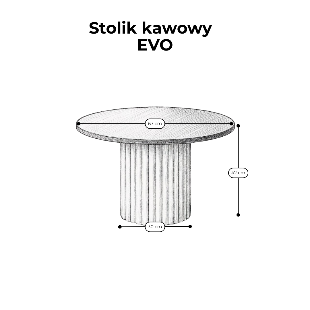 Stolik kawowy EVO to idealny wybór dla każdego wnętrza - okrągły stolik do salonu, który wprowadza lekkość, harmonię i nowoczesny design.