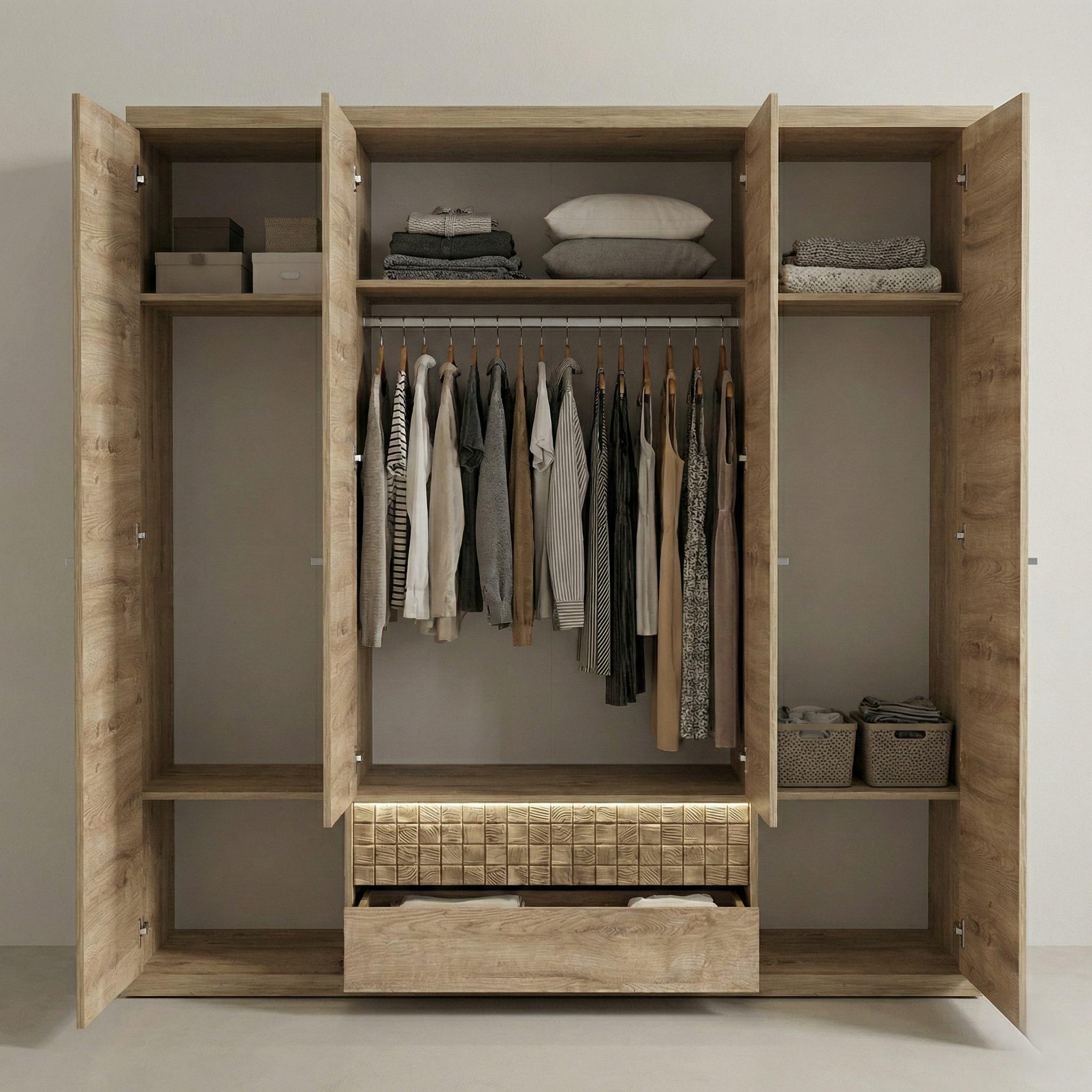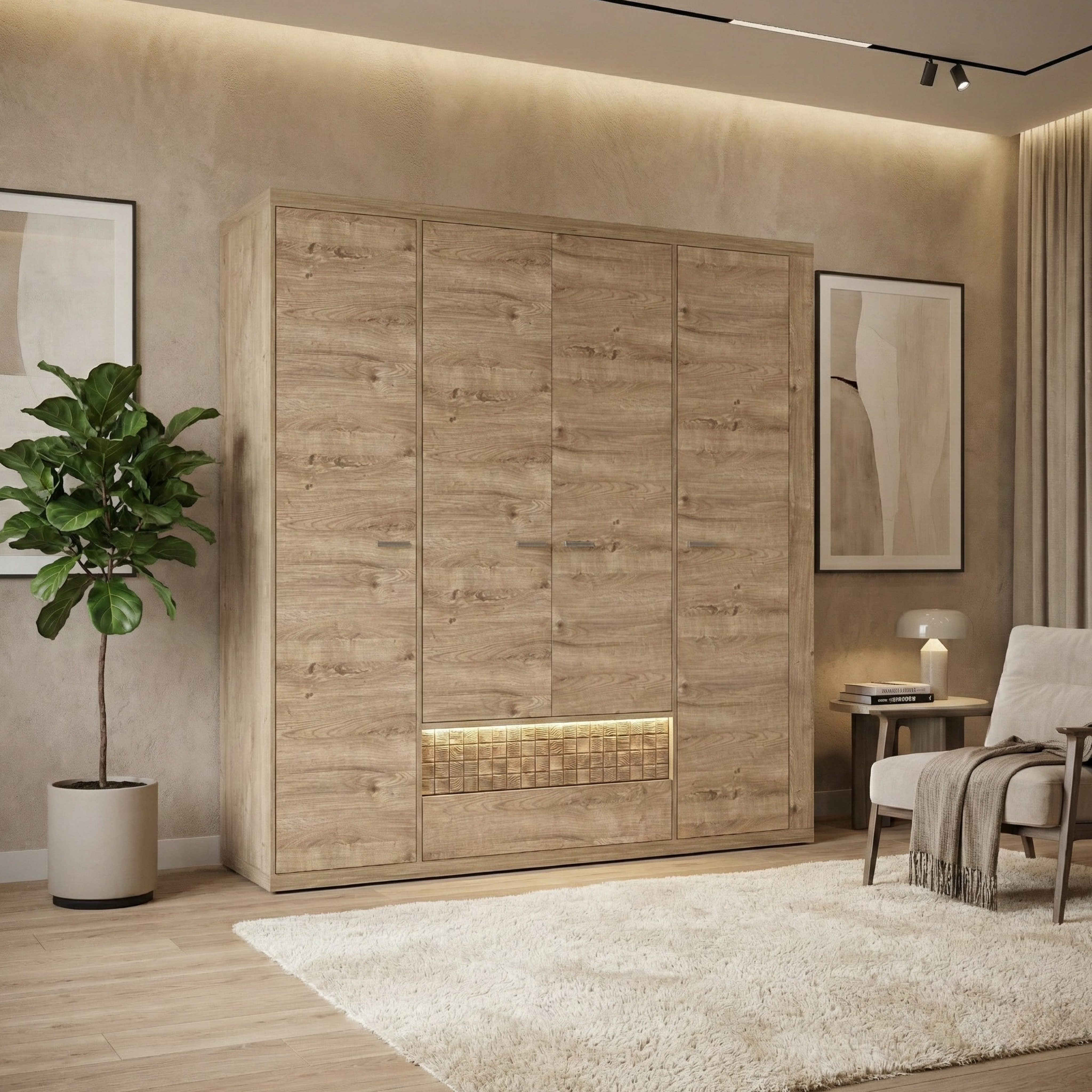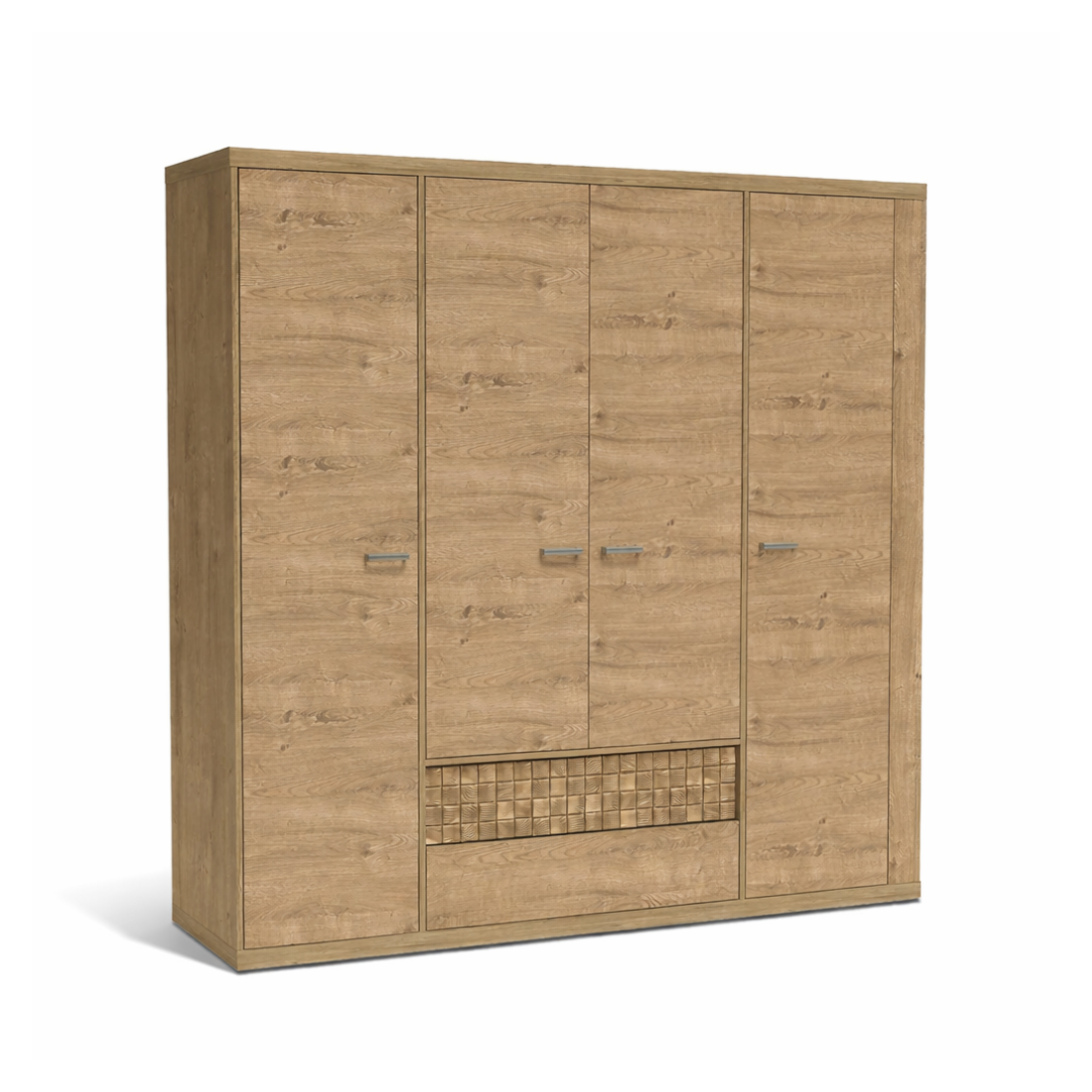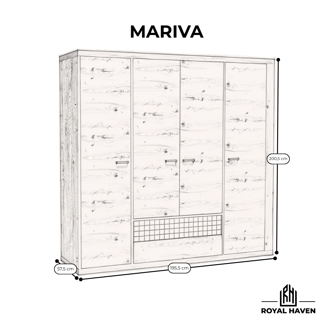MARIVA to przestronna, czterodrzwiowa szafa w stylu BOHO, która łączy prostą formę z wysoką funkcjonalnością. To idealne rozwiązanie dla osób poszukujących pojemnego i solidnego mebla do sypialni, garderoby czy przedpokoju.