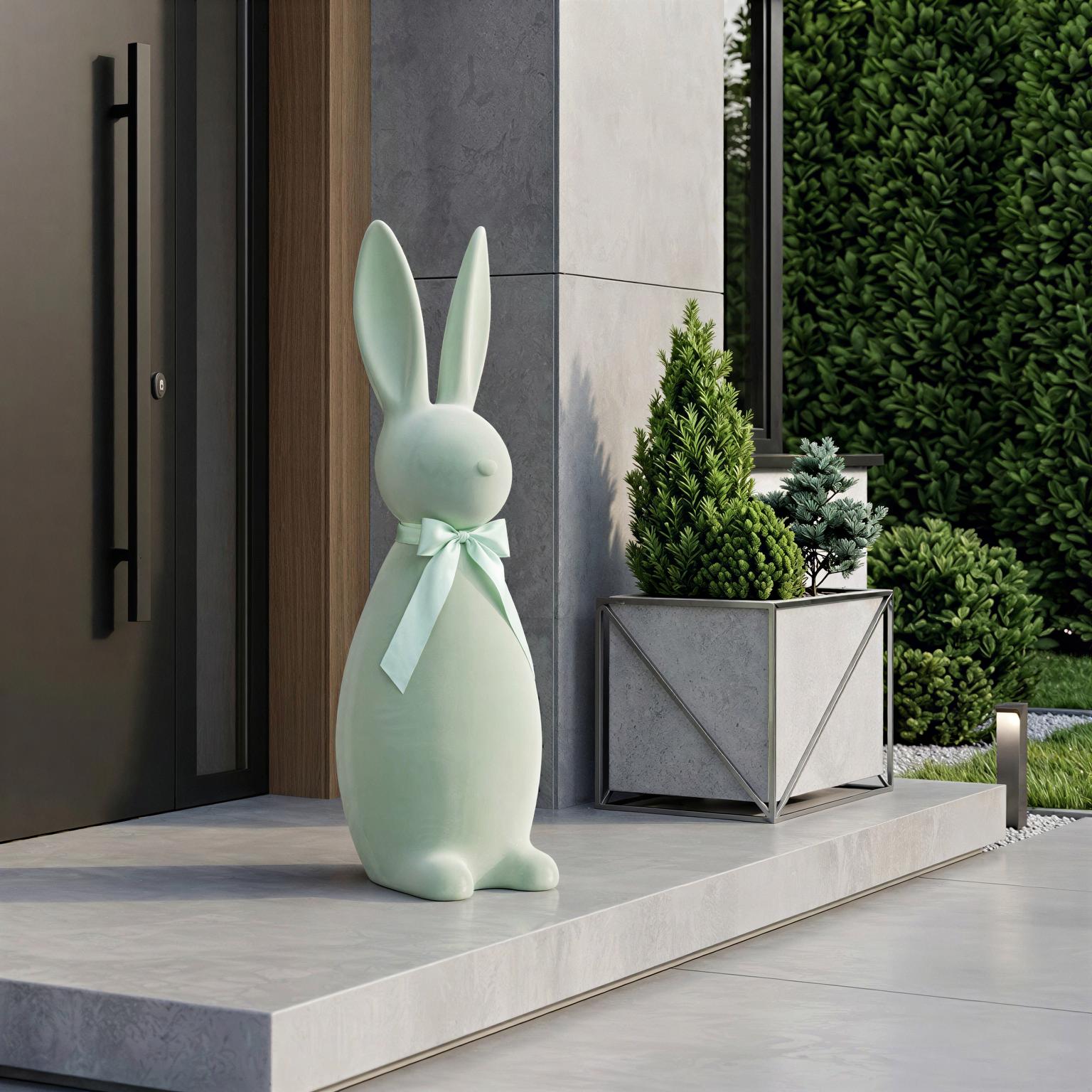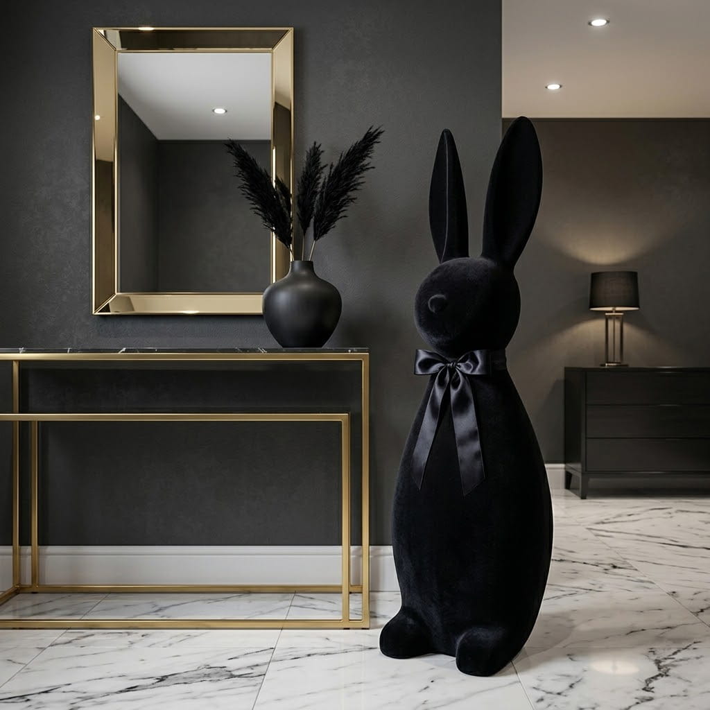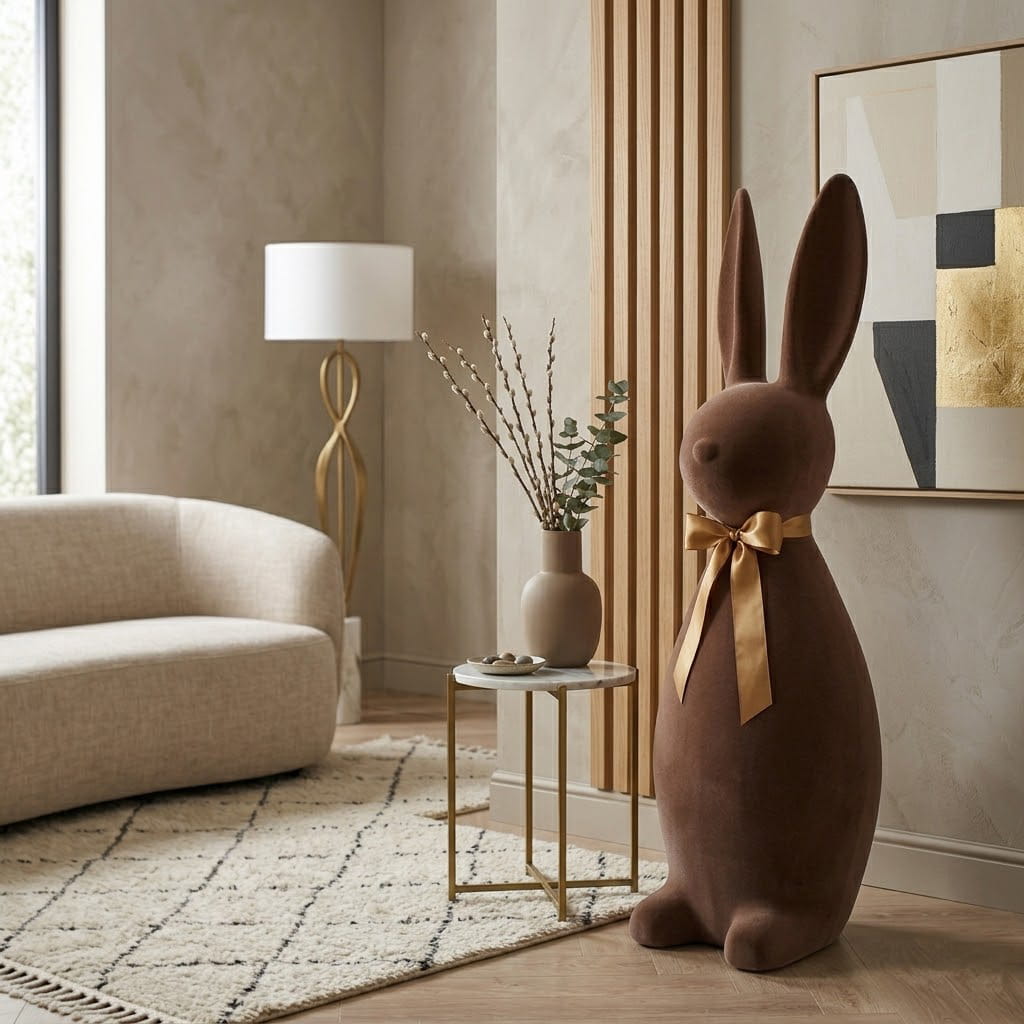 - spektakularny rozmiar - 134 cm wysokości sprawia, że zając staje się centralnym punktem dekoracji, który zachwyca i przyciąga wzrok.