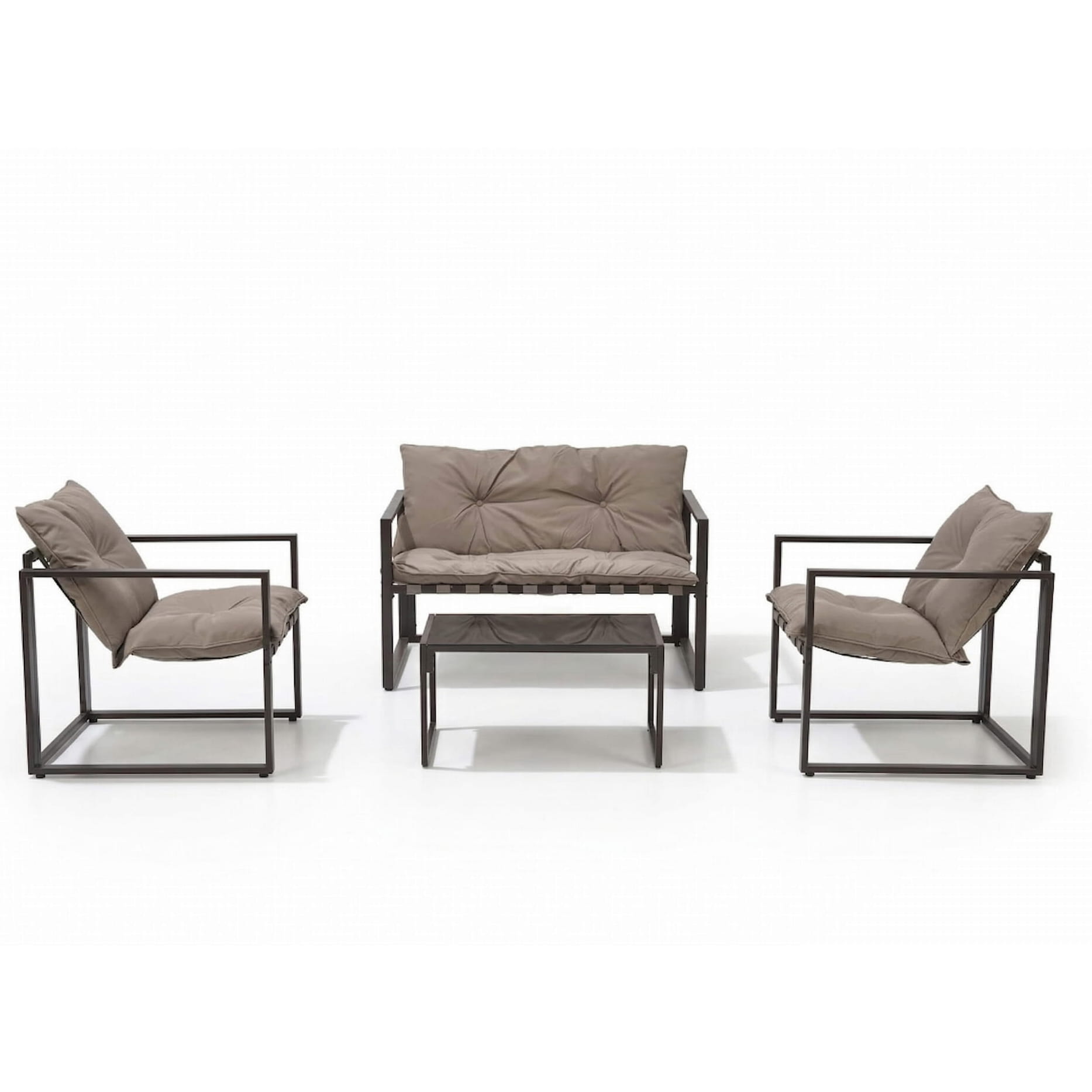 Zestaw ogrodowy VERDO - Sofa 2-osobowa + 2 Fotele + Ława, ciemny brąz/cappuccino