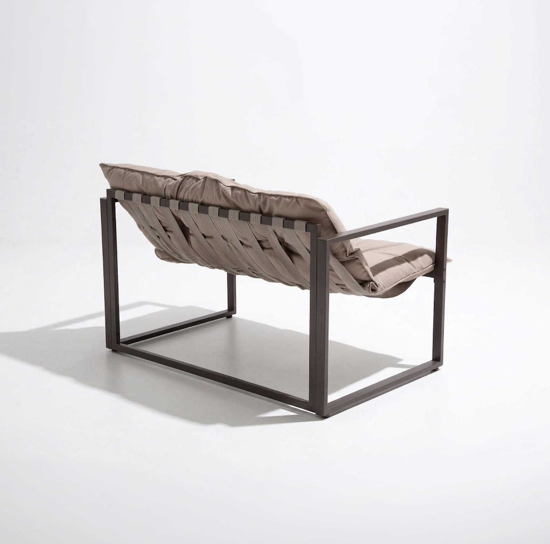 Na stalowej ramie osadzone są pasy nośne, na których znajdują się miękkie poduchy - prosty i wygodny sposób zapewniający komfort. Nóżki wykonane są z wytrzymałego tworzywa i mają możliwość poziomowania, co zapobiega bujaniu się mebli na nierównej powierzchni.