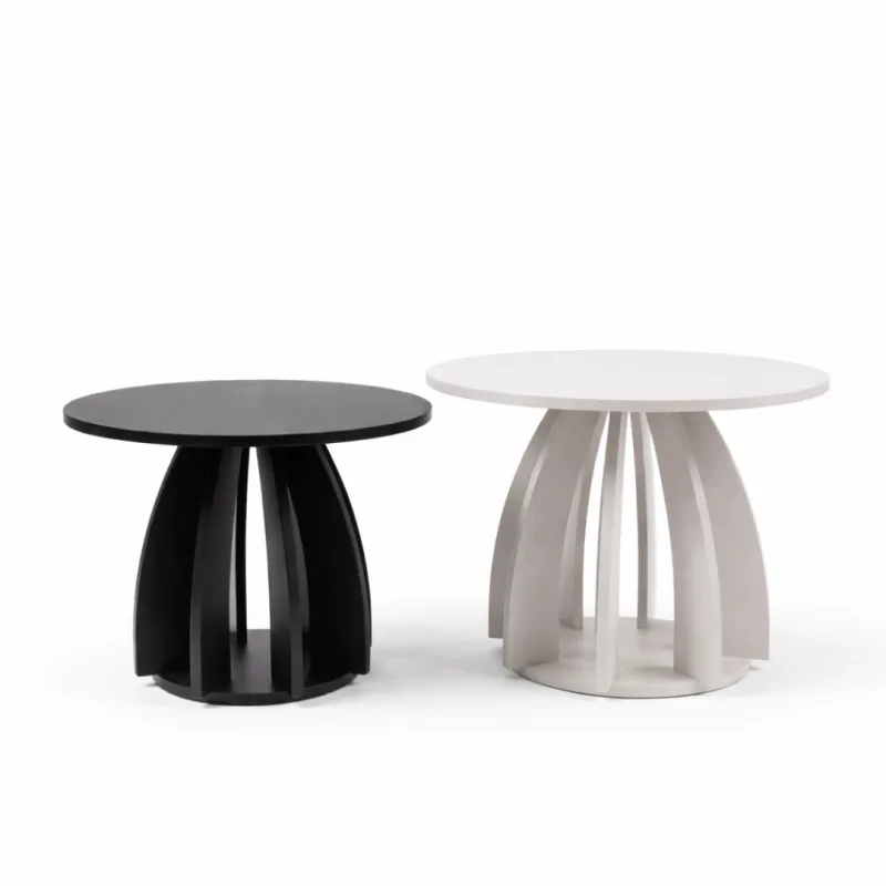 Stoliki kawowe WAVE wyróżniają się unikalną, ażurową konstrukcją z pionowymi lamelami, która nadaje im lekkości i elegancji. Obłe, zaokrąglone kształty nie tylko wpisują się w najnowsze trendy wnętrzarskie (styl loftowy, nowoczesny i japandi), ale również zwiększają bezpieczeństwo użytkowania. Połączenie klasycznej czerni z modnym odcieniem kaszmiru tworzy harmonijny kontrast, który ożywia każdą aranżację.
